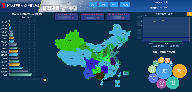 對標管理系統(tǒng)財務(wù)部分主要進行數(shù)據(jù)分析,為中國大唐集團公司以及板塊企業(yè)進行多維度分析決策和運營決策提供及時有效的信息。對標管理系統(tǒng)物資部分主要實現(xiàn)電子倉庫,實現(xiàn)物料全集團共享查詢、支持備品備件協(xié)作網(wǎng)管理、聯(lián)儲代儲管理;整合各基層企業(yè)采購數(shù)據(jù)并且集成大唐電子商城平臺相關(guān)采購數(shù)據(jù),進行數(shù)據(jù)分析為采購決策提供支持。