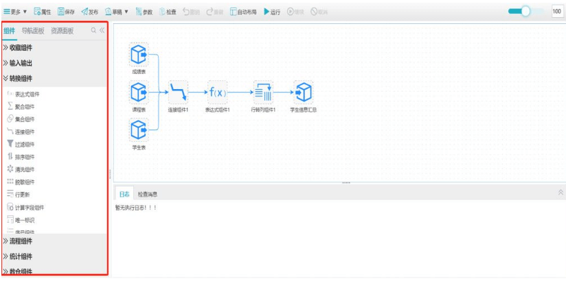 億信ABI中內(nèi)置組件包括:輸入輸出組件、轉(zhuǎn)換組件、流程組件、統(tǒng)計組件、數(shù)倉組件、腳本組件、大數(shù)據(jù)組件等。面向數(shù)據(jù)分析師精心打造,滿足各種各樣的數(shù)據(jù)處理場景。