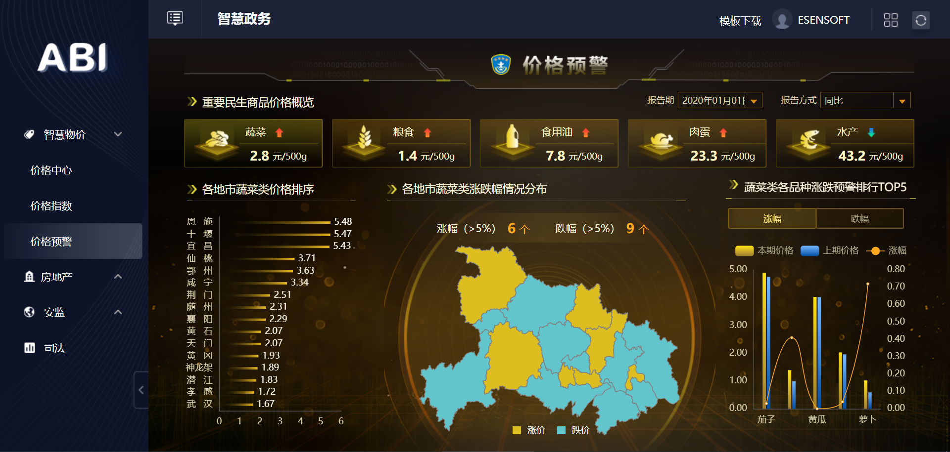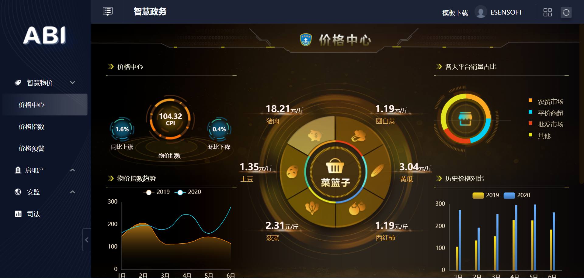3.智慧政務(wù)大數(shù)據(jù)平臺BI系統(tǒng)-菜籃子價格監(jiān)控中心