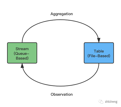 通過(guò)上述的分析,相信不少讀者已經(jīng)隱約感覺(jué)到:基于文件的存儲(chǔ)類似流表二象性中的表,適合用于保存可以被查詢的可變狀態(tài)(計(jì)算的最終結(jié)果或中間結(jié)果),而基于隊(duì)列的存儲(chǔ)類似表示流表二象性中的流,適合用于保存被流計(jì)算引擎讀取的事件流(Changelog 數(shù)據(jù))。
