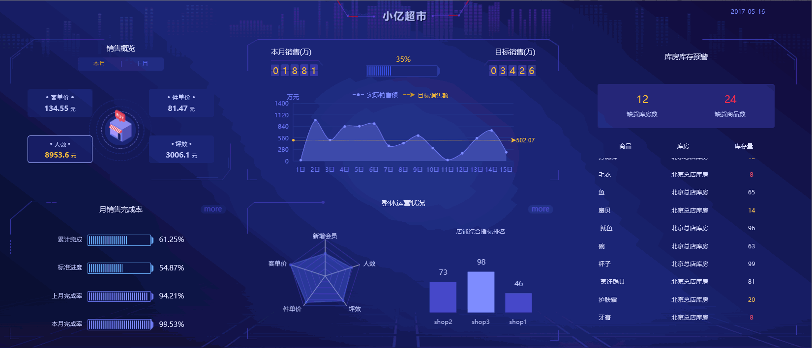 作為BI軟件中的一個重要功能,它以駕駛艙的形式,通過各種常見的圖表(速度表、音量柱、預(yù)警雷達(dá)、雷達(dá)球)形象標(biāo)示企業(yè)運(yùn)行的關(guān)鍵指標(biāo)(KPI), 直觀的監(jiān)測企業(yè)運(yùn)營情況,并可以對異常關(guān)鍵指標(biāo)預(yù)警和挖掘分析。
